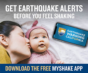 | During Thursday's Great Shakeout, San Diegans Will Prep for the ‘Big One' | NBC7 San Diego, October 20, 2021 | Californians can sign up for the MyShake App to receive a test earthquake warning. The free app is available at Apple App and Google Play. Wireless no-cost text messages for emergency situations alerts are also available. |