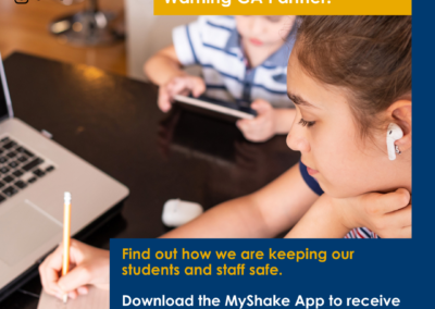 [School Name] encourages our [staff/students and their families] to have a plan for how to protect themselves in the event of an earthquake. If you receive a warning or feel shaking, there are moments to act. There may be circumstances where a warning is issued, but no shaking occurs. It is always better to be on the side of caution when it comes to earthquakes. We encourage you to share this information with friends and family in California to help spread the word about the technology available to help keep them safe.