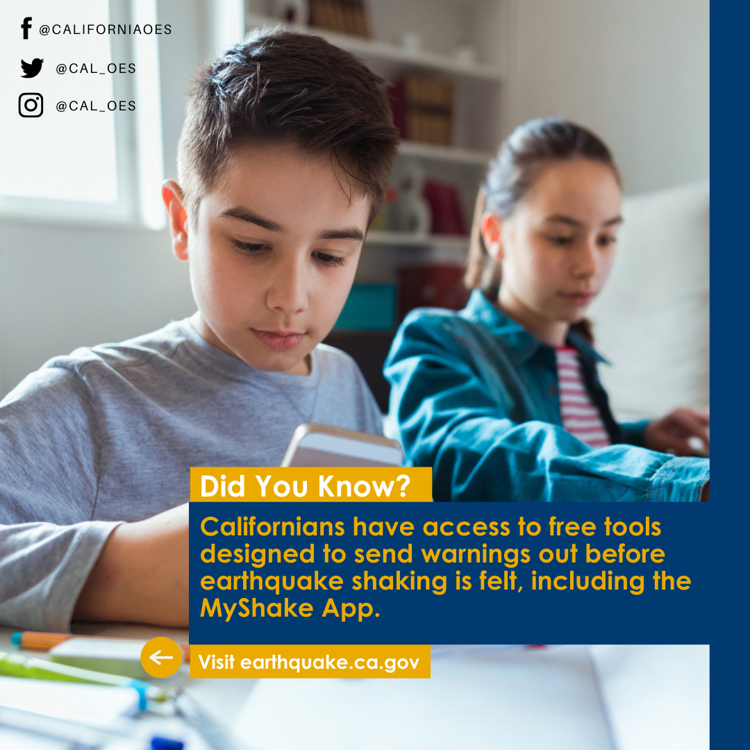 Share the following information via newsletter or social media! For questions relating to Earthquake Warning California, email earthquakeinfo@caloes.ca.gov.